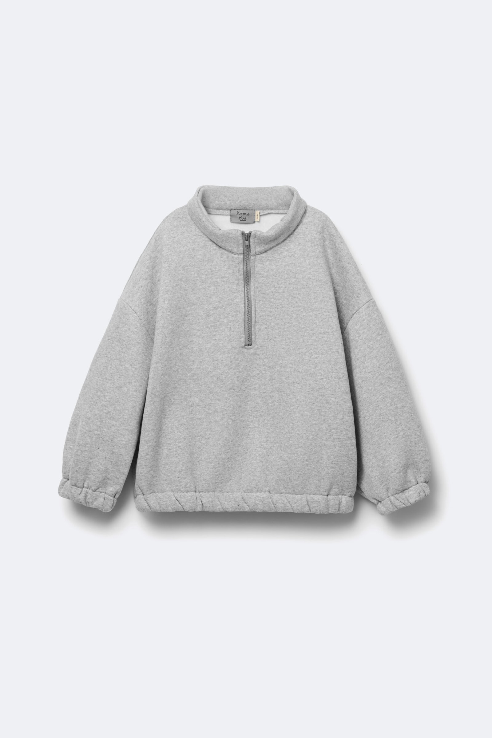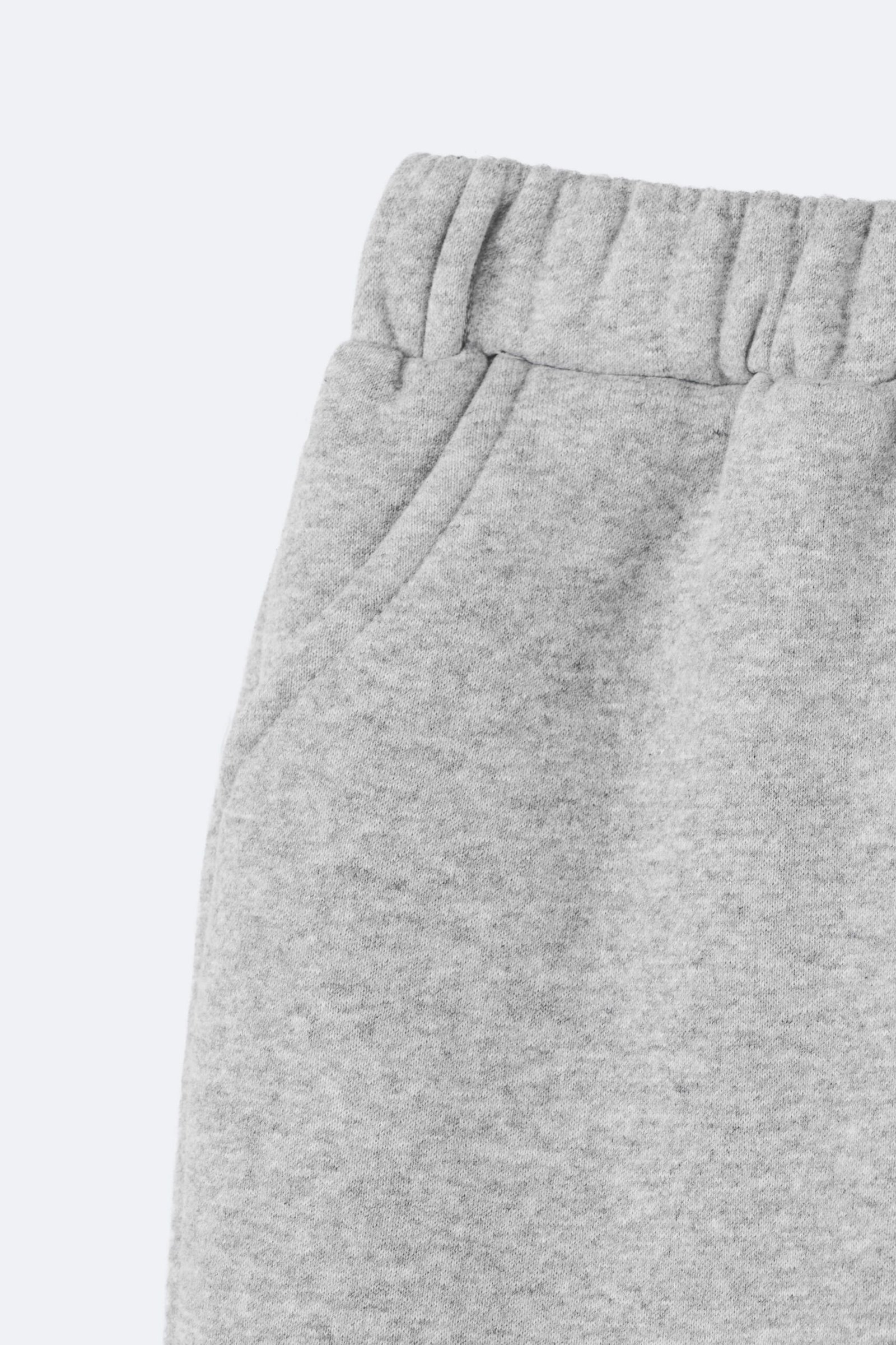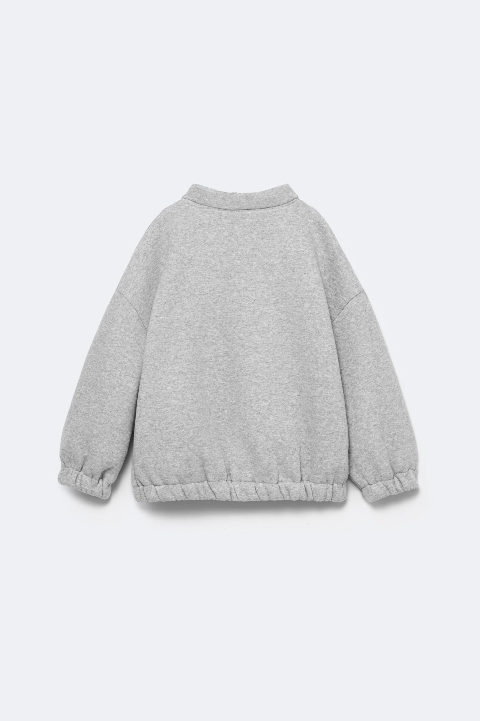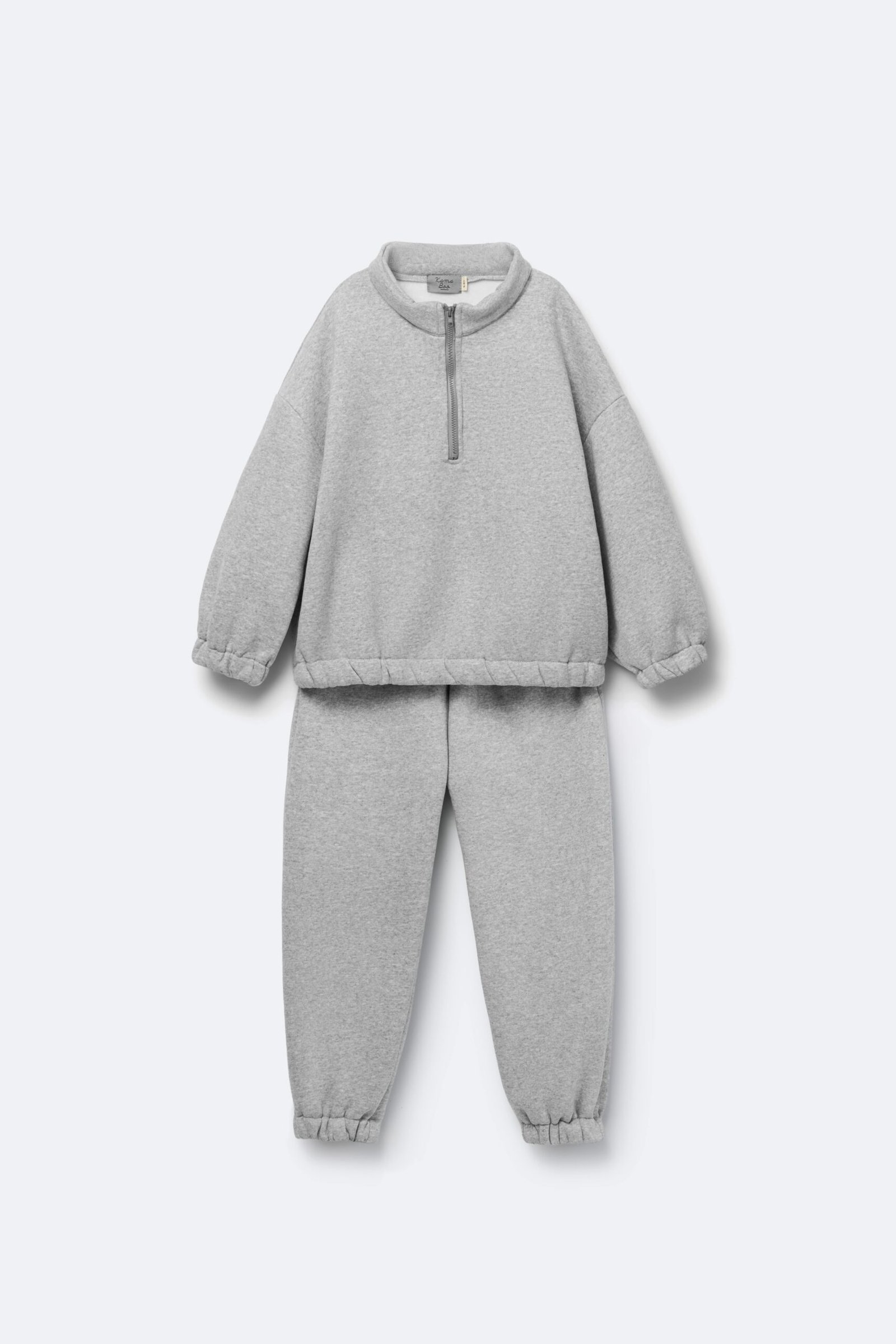 Set featuring a high-neck sweatshirt with a half-zip fastening. Long sleeves with dropped shoulders and elastic hem. Personalized embroidery detail on the front. Matching jogger trousers with an elastic waistband and cuffed hems.