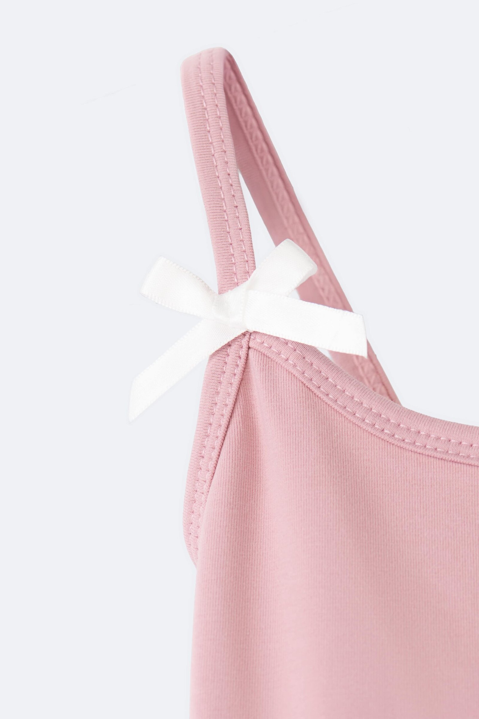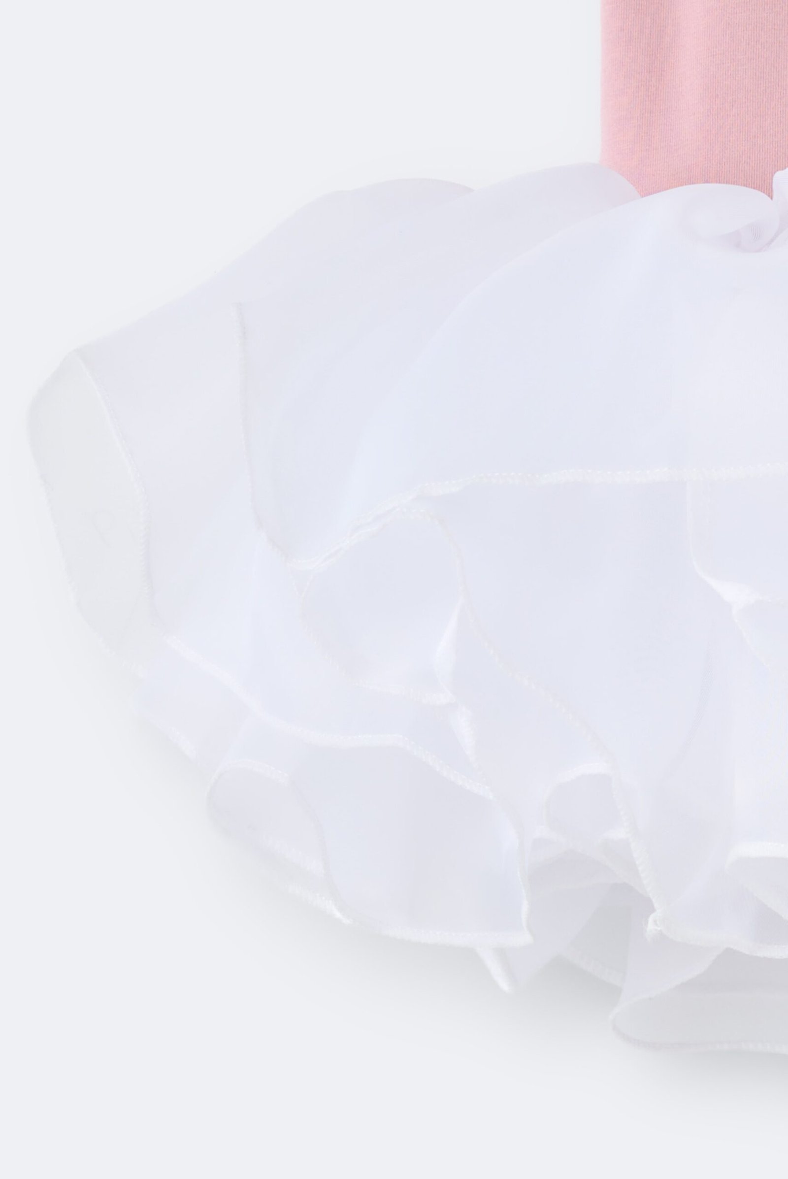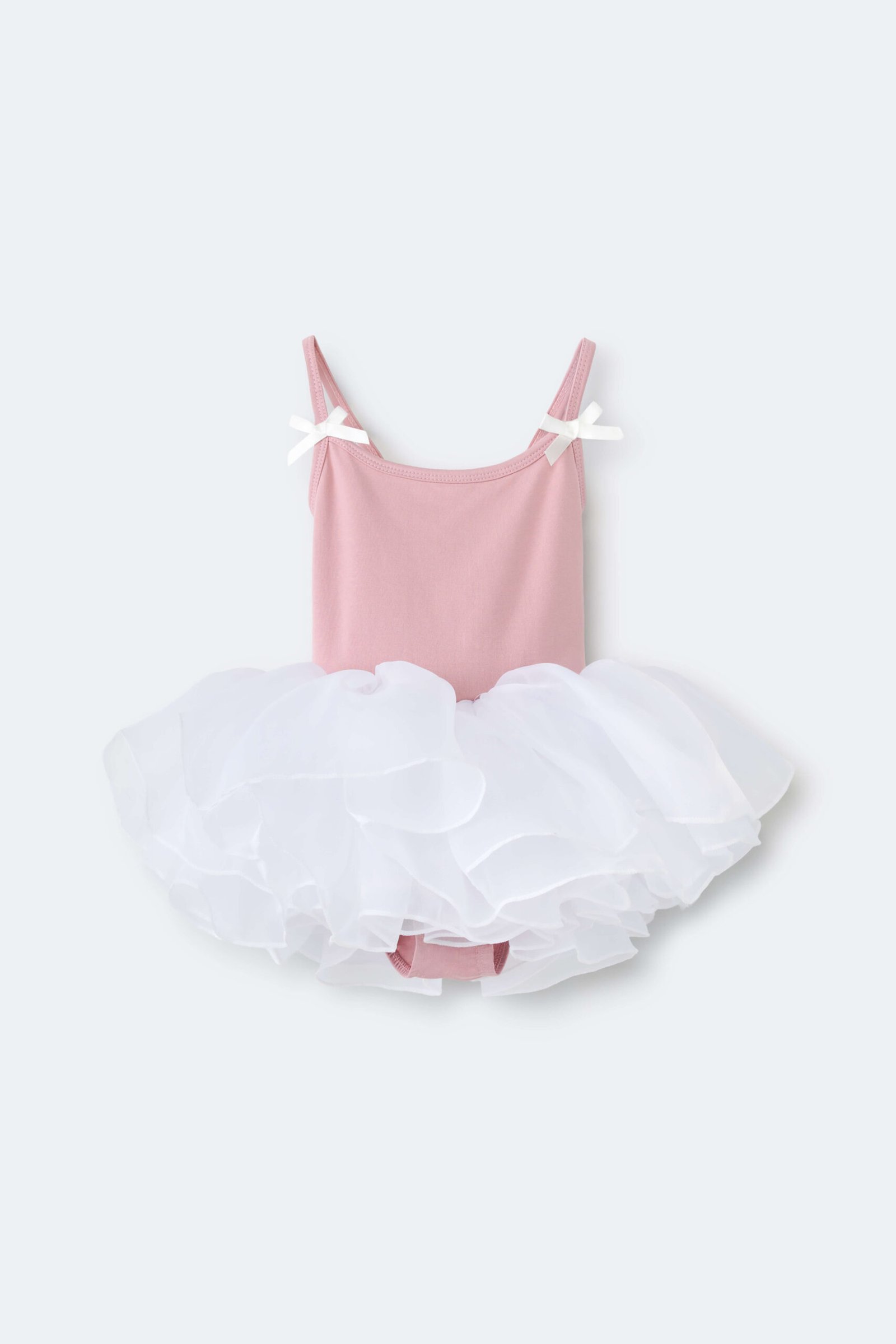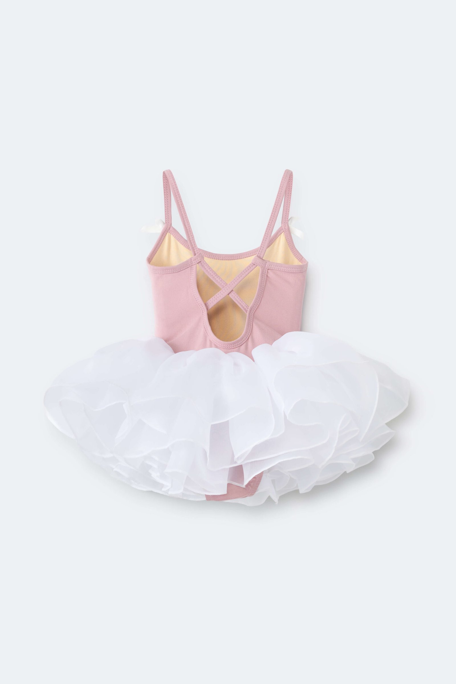 Dress with thin straps and bow details on the shoulders. Comfortable stretch bodice with personalized embroidery on the front. Soft layered tutu skirt that’s lightweight and perfect for twirling.