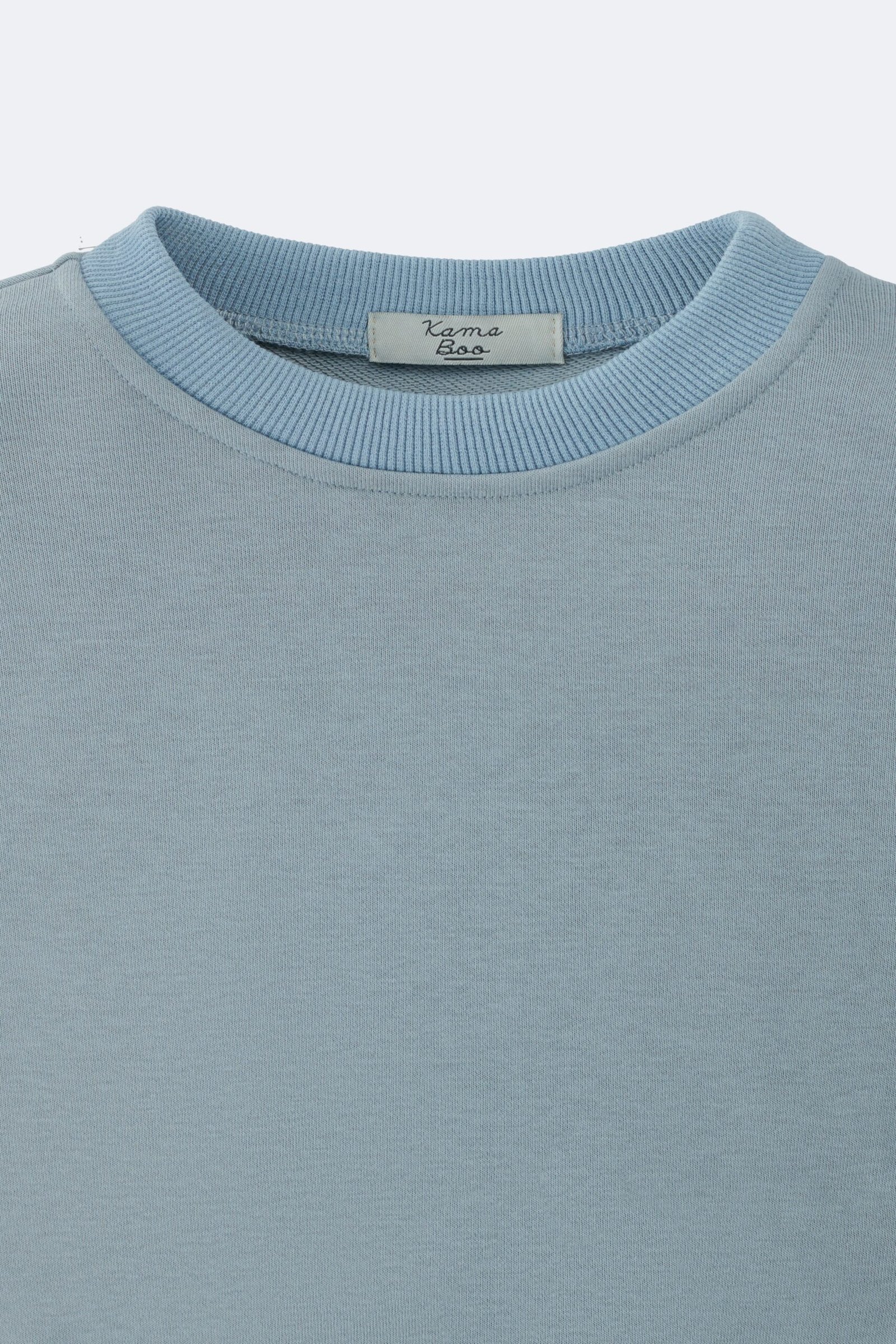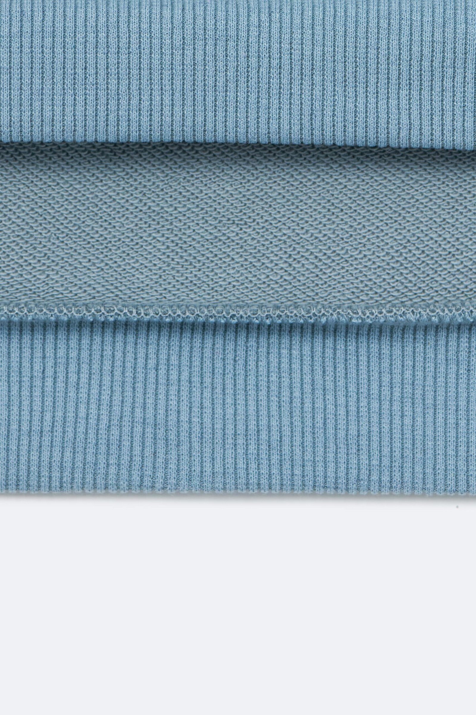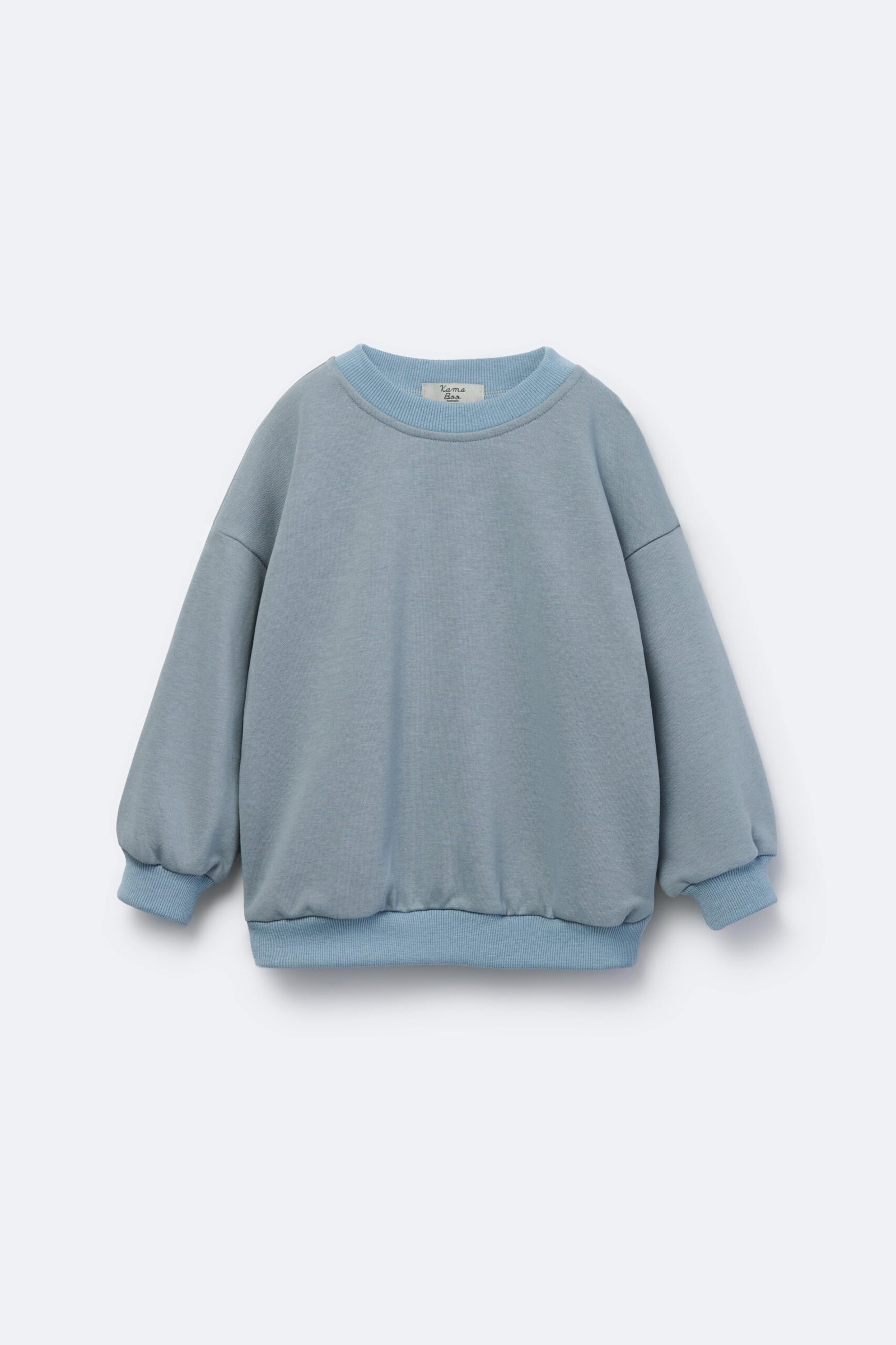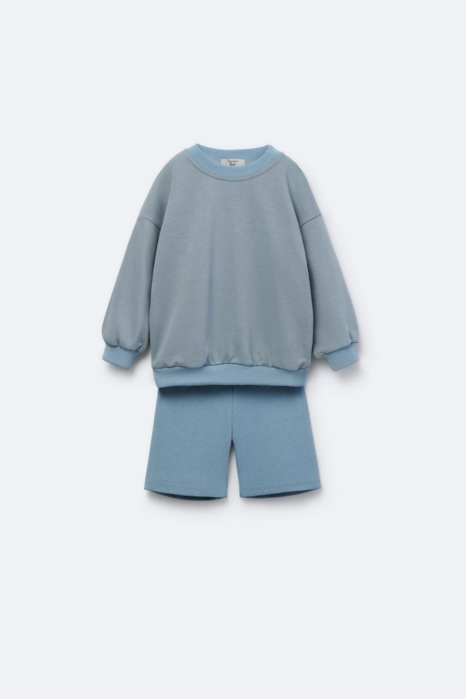 Set featuring a round-neck sweatshirt with long sleeves and ribbed trims. Personalized embroidery detail on the chest. Matching leggings with an elastic waistband. Neutral modern color, perfect for boys or girls.