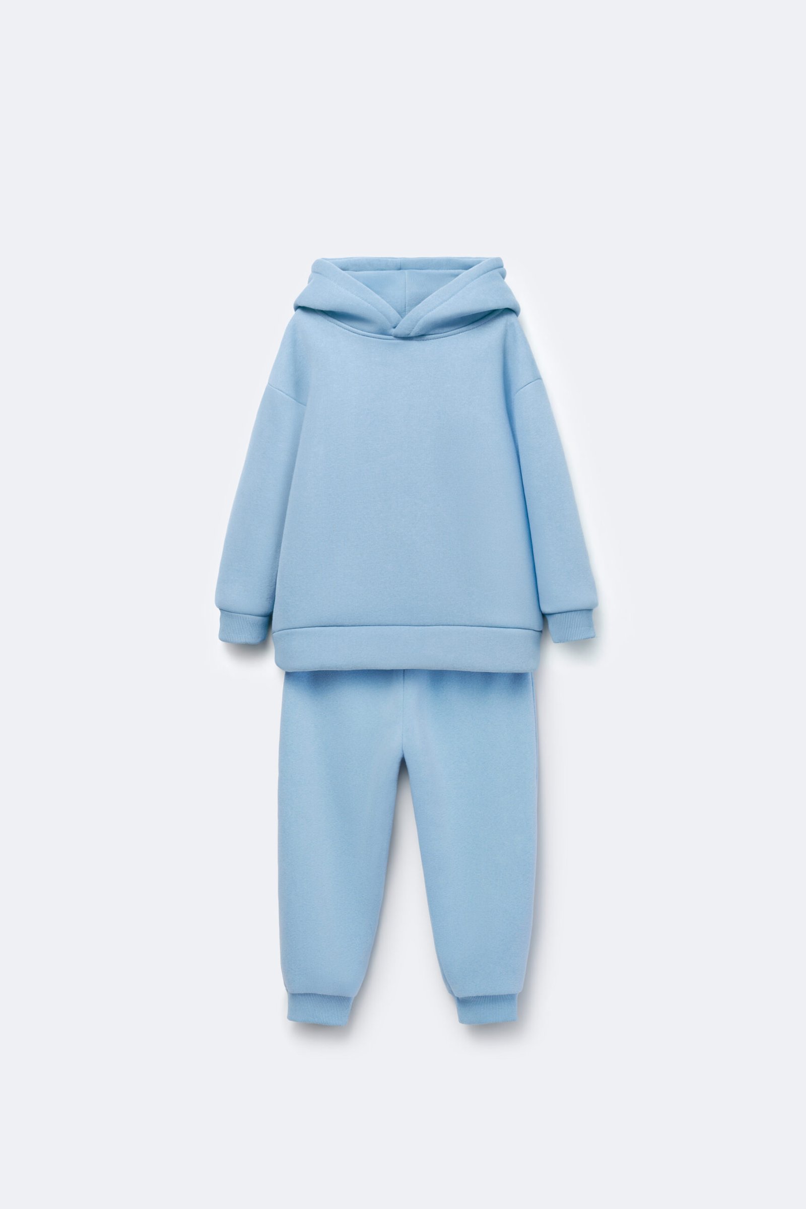 - Two-piece fleece set with hoodie and joggers. Dropped shoulders and ribbed cuffs. Elastic waist joggers with ribbed hems. Name on chest. This sophisticated two-piece fleece set features a stylish hoodie complemented by coordinating joggers, designed for both comfort and elegance. The dropped