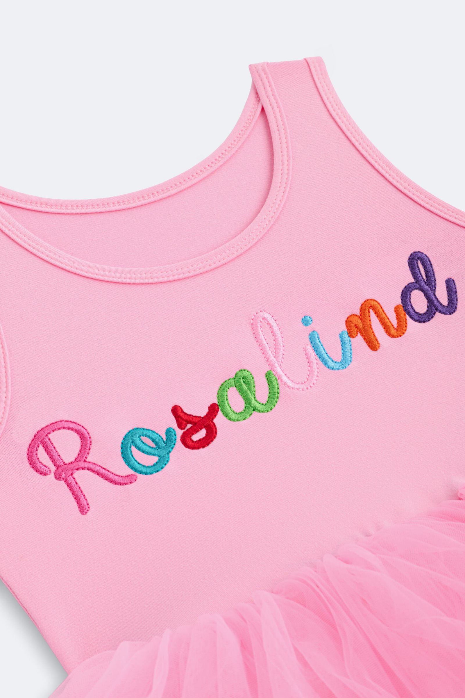 Sleeveless dress with a soft bodice and multi-layered tulle skirt.