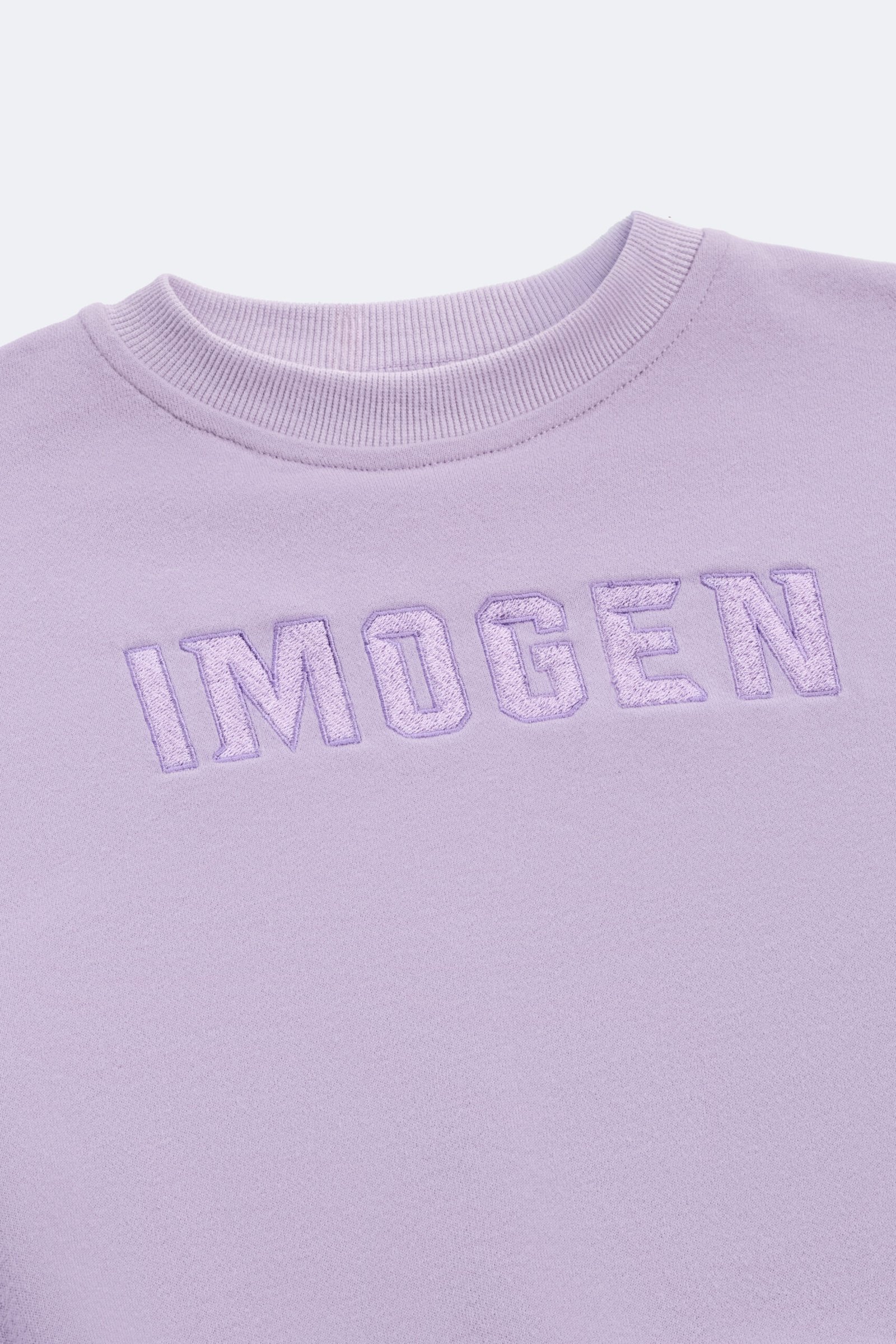 Set featuring a round-neck sweatshirt with long sleeves and ribbed trims. Personalized embroidery detail on the chest. Matching leggings with an elastic waistband. Neutral modern color, perfect for boys or girls.