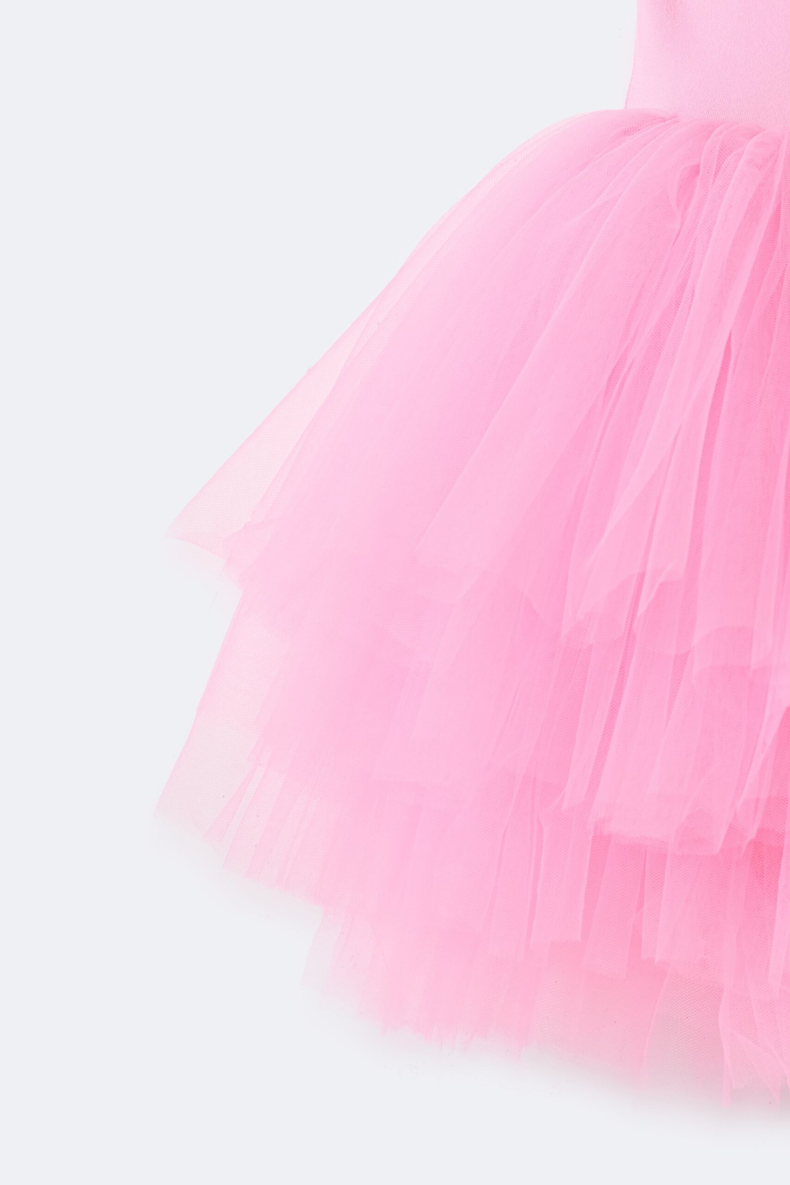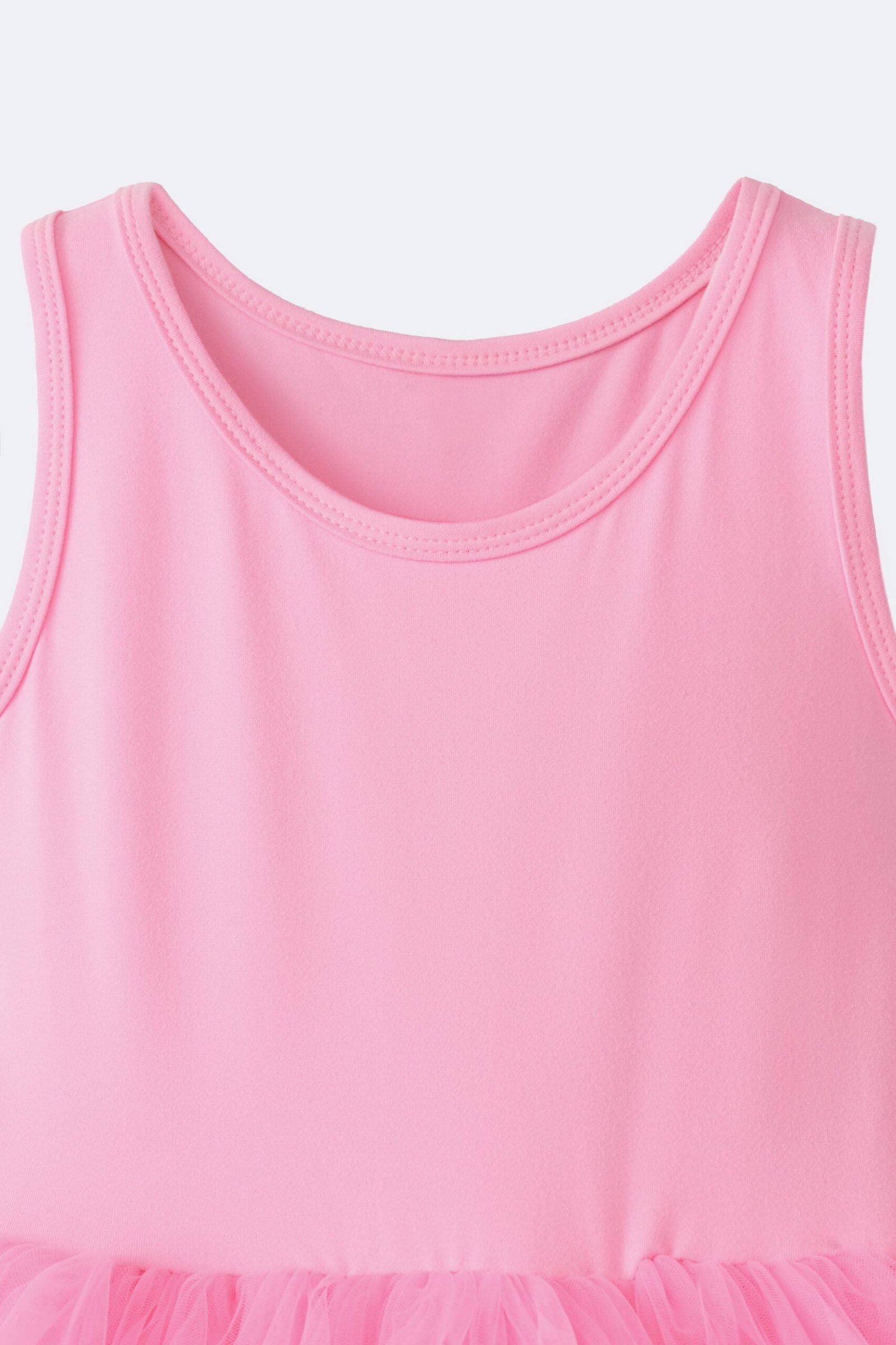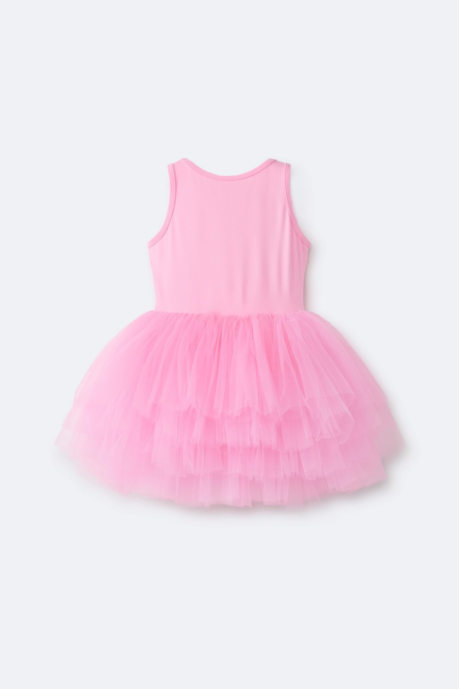 Sleeveless dress with a soft bodice and multi-layered tulle skirt.