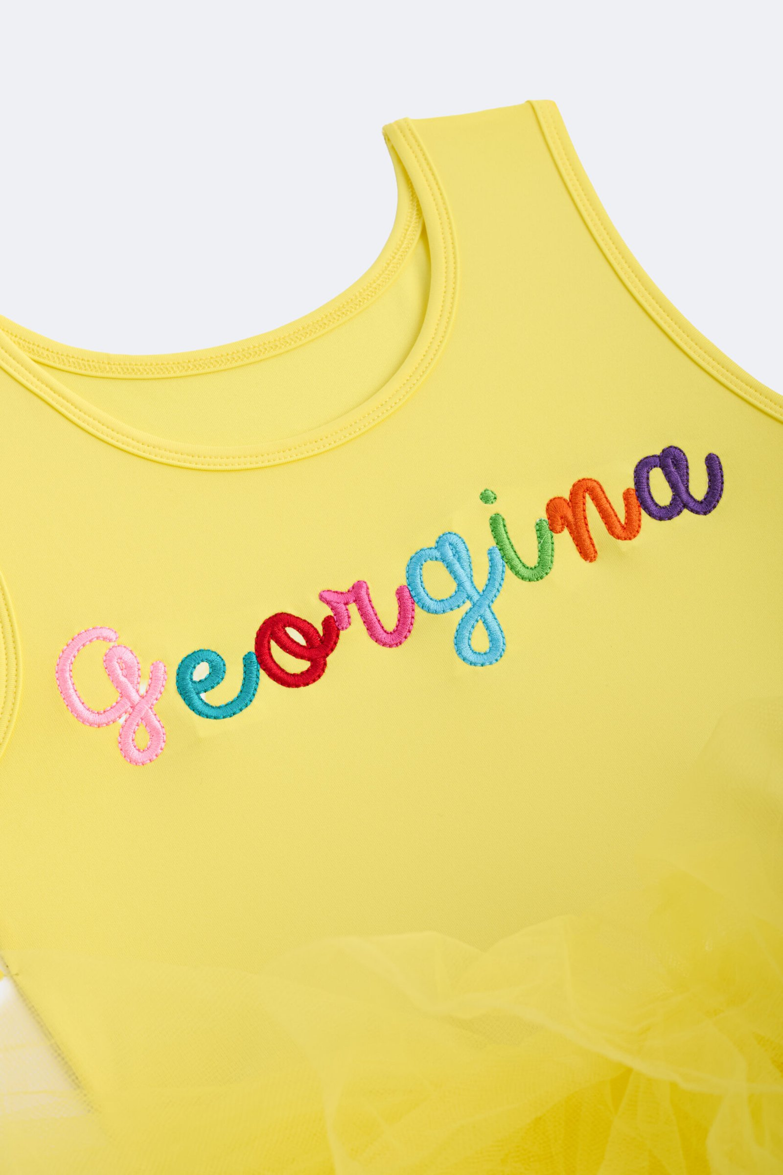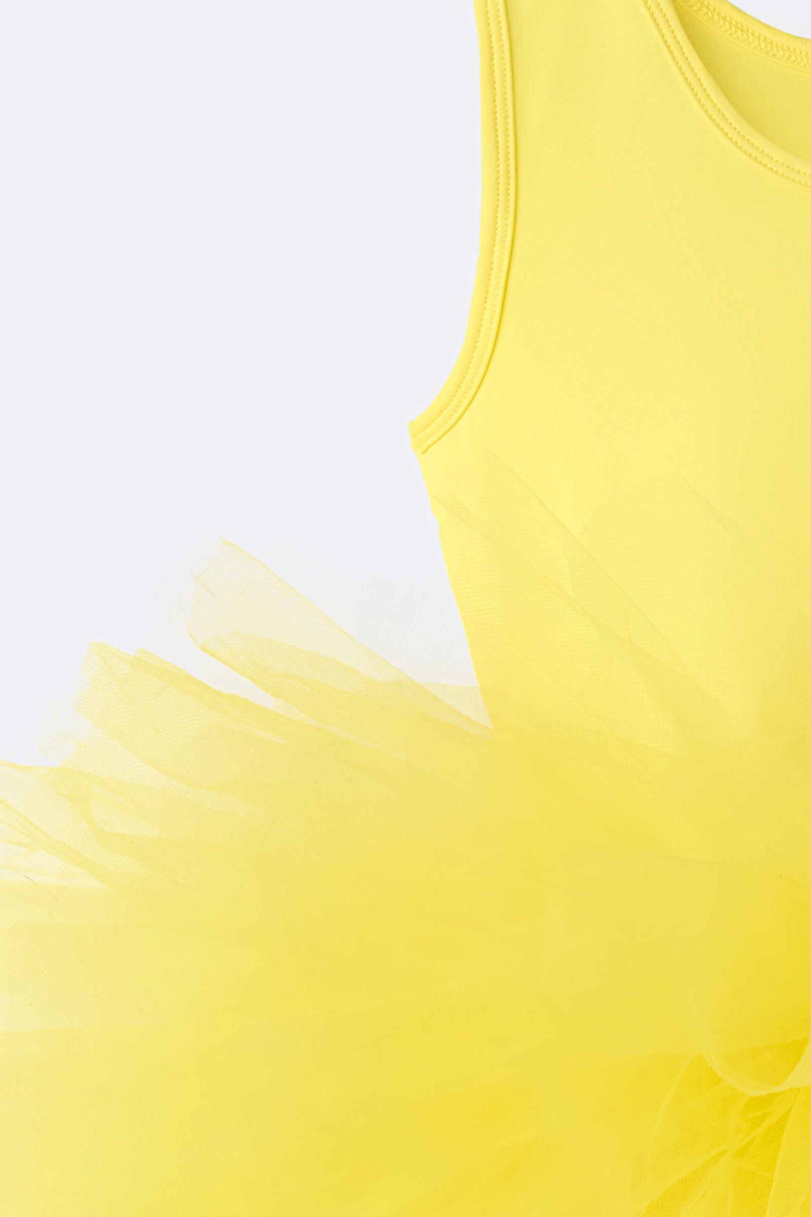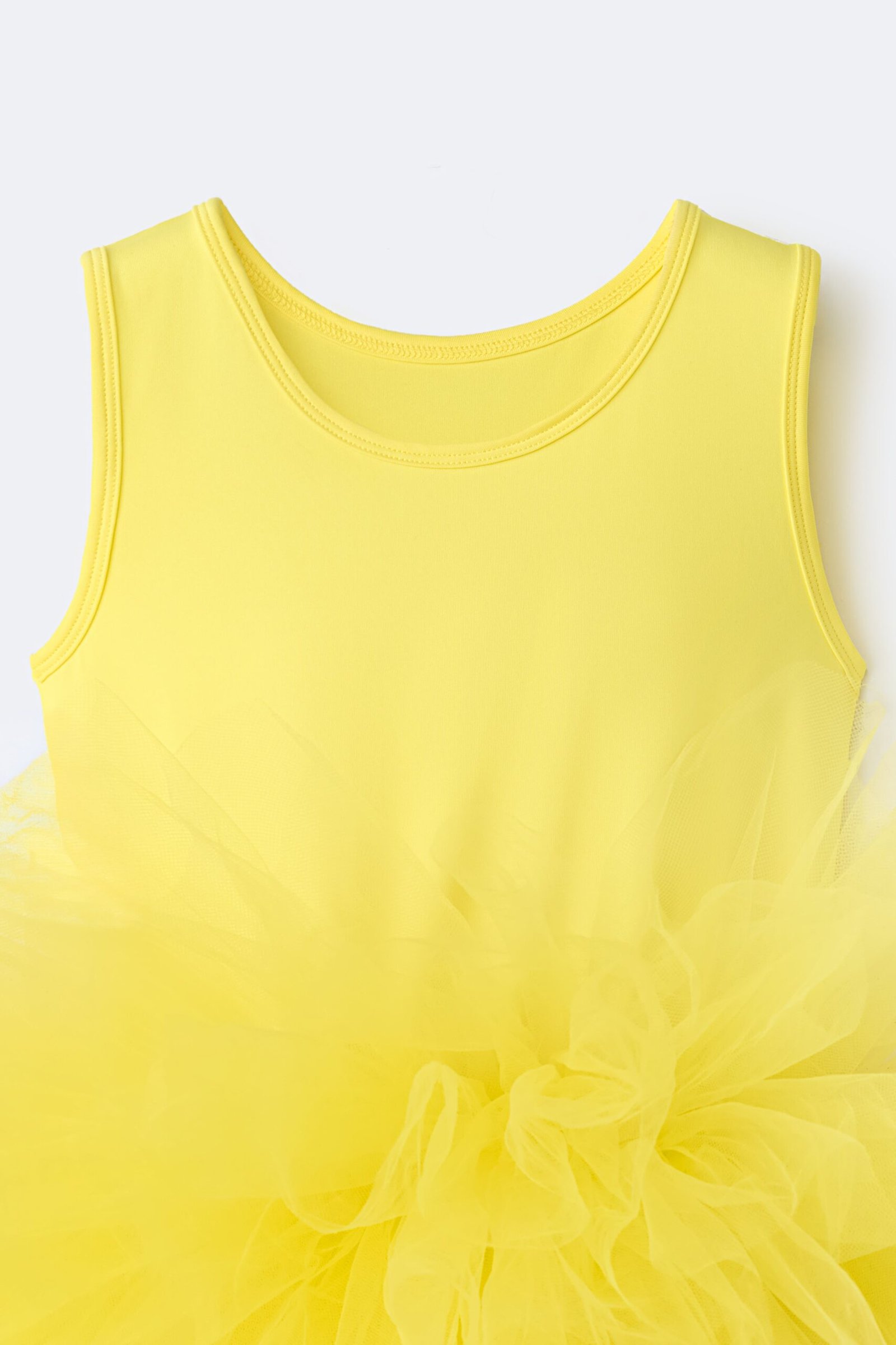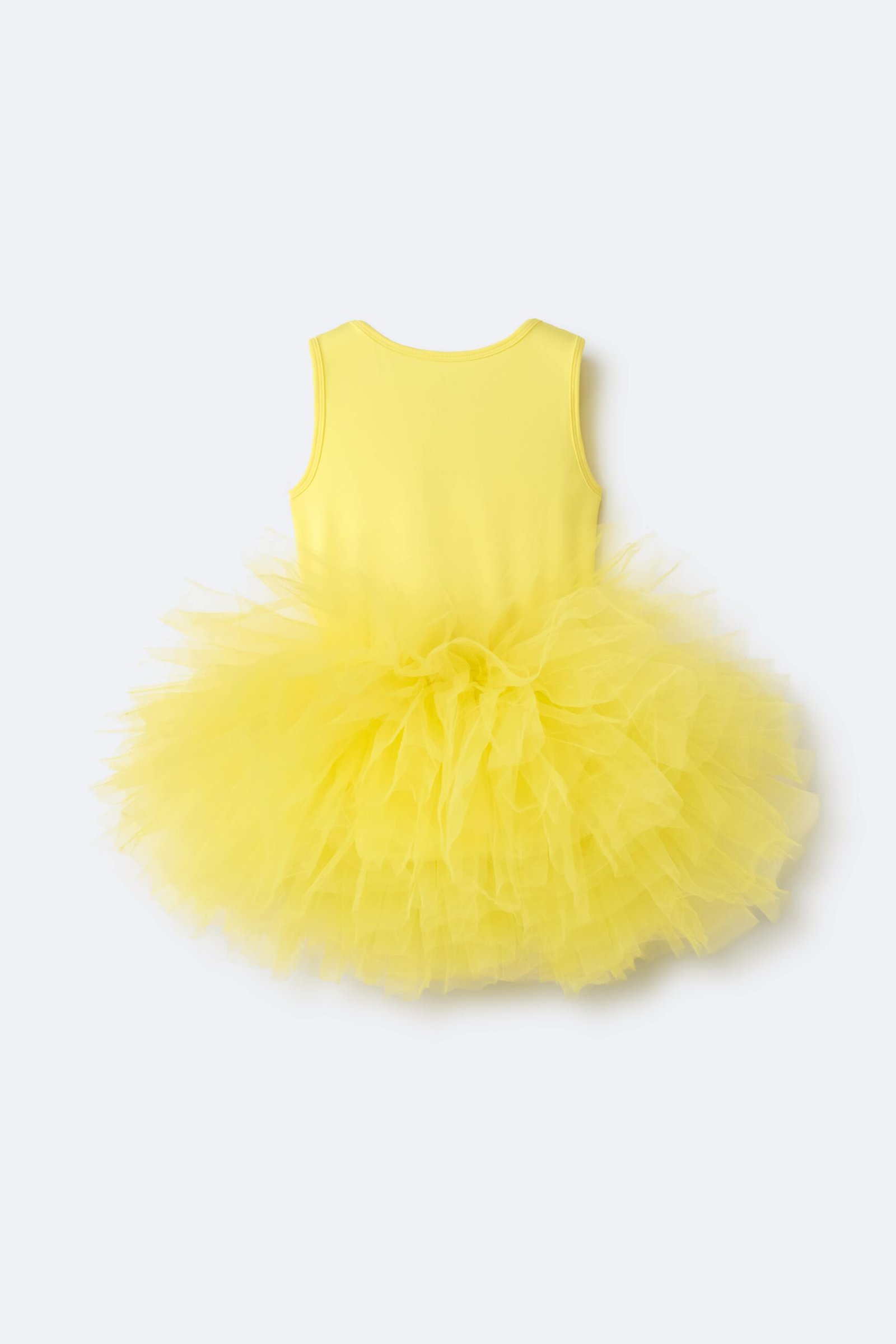 Sleeveless dress with a soft bodice and multi-layered tulle skirt.