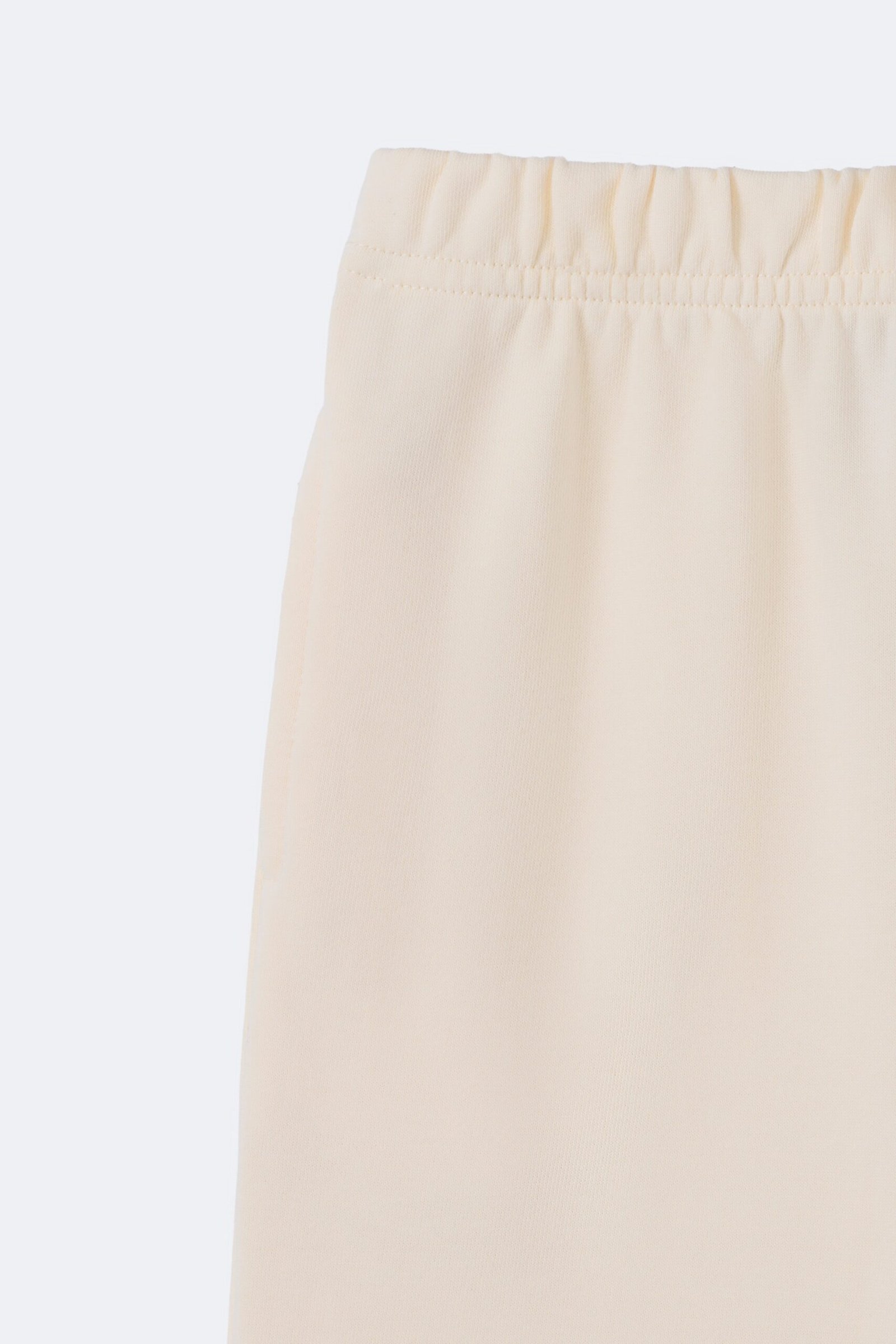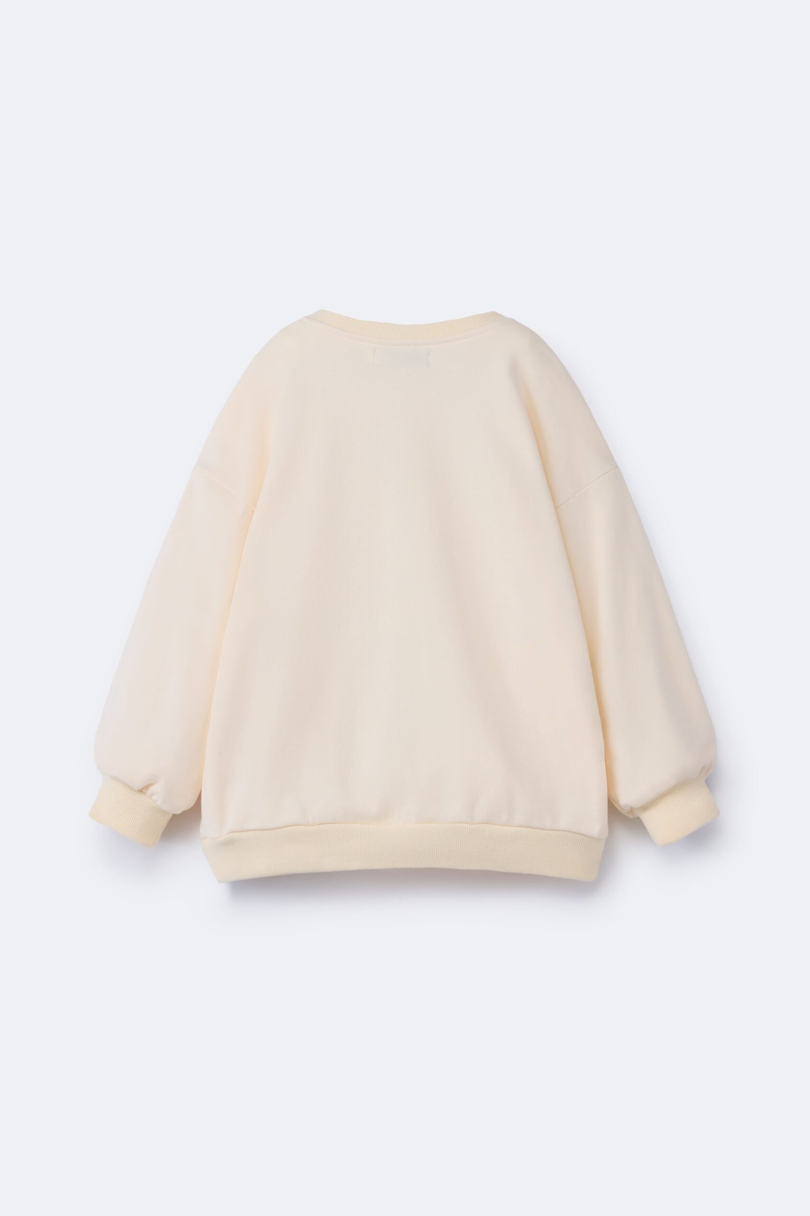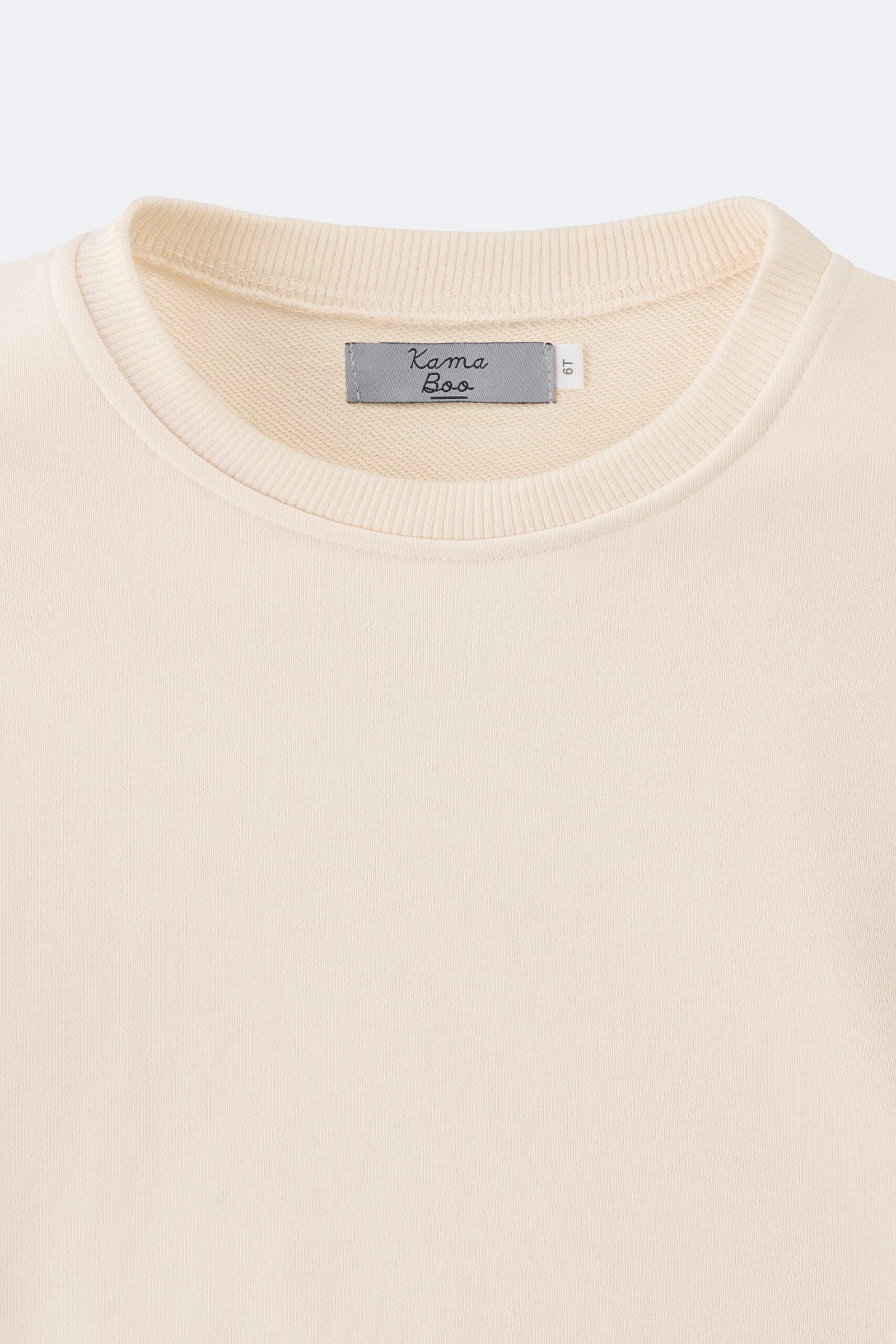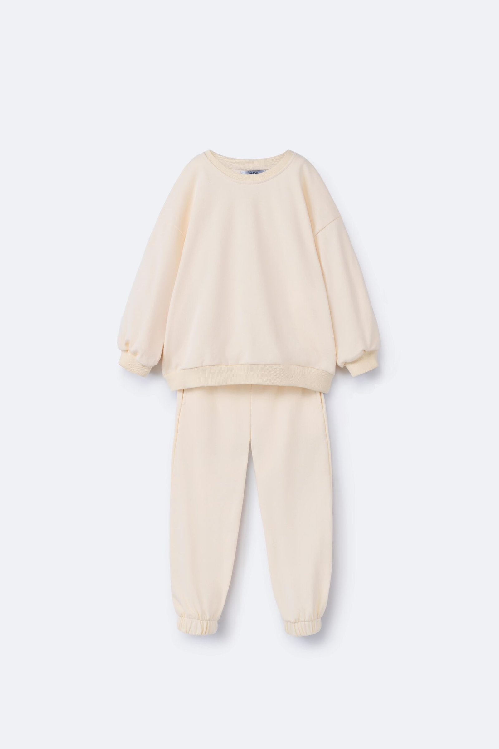 Set featuring a round-neck sweatshirt with long sleeves and ribbed trims. Personalized embroidery detail on the front. Matching jogger trousers with an elastic waistband and cuffed hems.