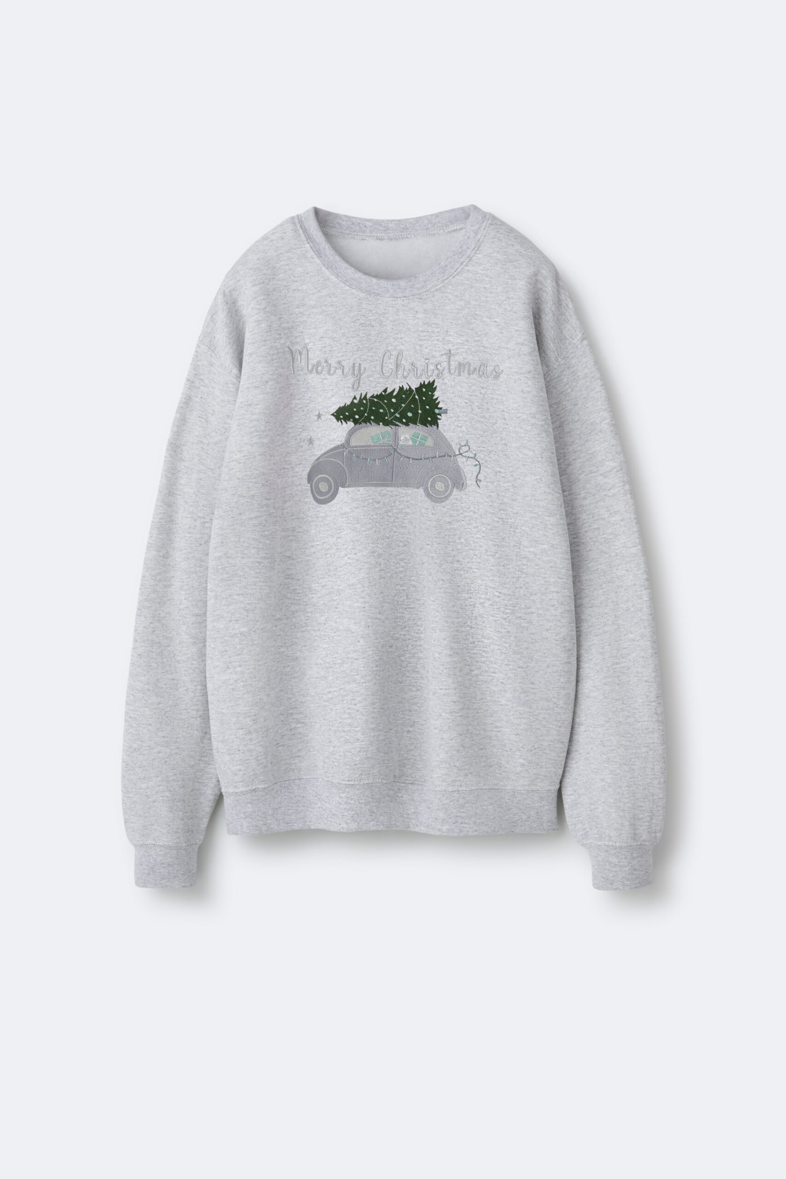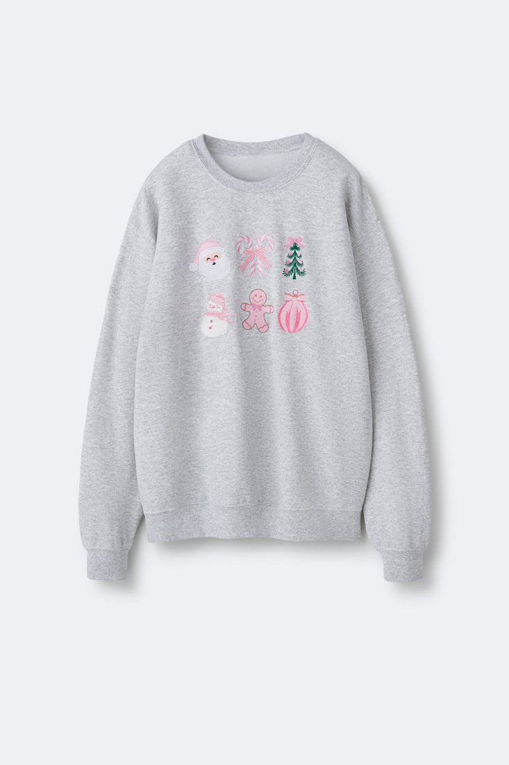 Christmas Embroidered Fleece Sweatshirt – Light Grey